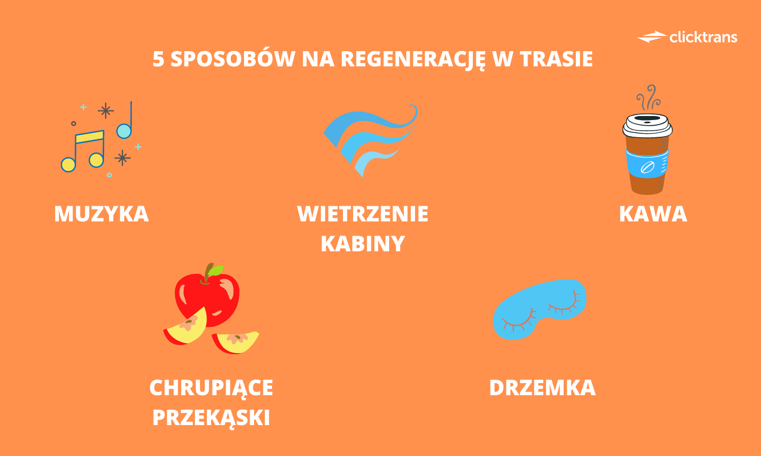 Brzmi to niezbyt zachęcająco, ale działa. Słuchając ulubionej muzyki uspokajamy się i możemy tracić koncentrację. Jeśli włączysz to, za czym nie przepadasz, mózg siłą rzeczy będzie bardziej pobudzony. Jeśli obawiasz się, że możesz zasnąć, unikaj także słuchania spokojnych, wolnych utworów. Lepsza będzie muzyka dynamiczna, pełna energii i puszczona troszkę głośniej. Możesz przejrzeć sobie playlisty przygotowane przez użytkowników serwisów muzycznych, takich jak Spotify i znaleźć coś dla siebie. Oto jedna z playlist “na drogę”: https://open.spotify.com/playlist/1QDgGQN6WJvUNWWu5fGOkt