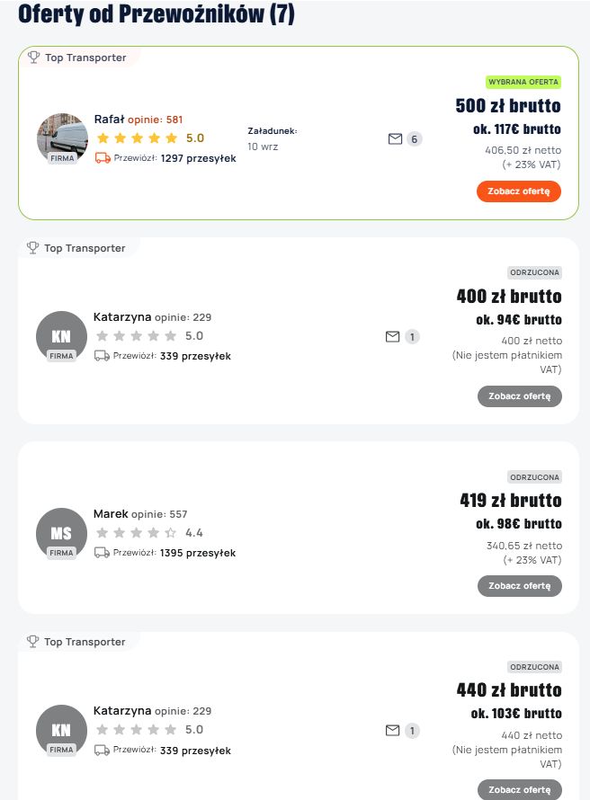 To kolejny świetny sposób na porównanie cen i wybranie tej najkorzystniejszej. Co więcej przewoźnicy kursują zarówno po Polsce, jak i na trasach zagranicznych. W jednym miejscu możesz znaleźć firmę, która przetransportuje Twoją paczkę do Białegostoku, jak i do Berlina