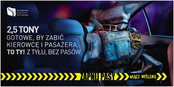 Łatwo można sobie wyobrazić co dla pasażera siedzącego z przodu oraz dla kierowcy oznacza niezapięty pasami pasażer siedzący na tylnim siedzeniu podczas wypadku. Prawdopodobnie osoba siedząca z przodu nawet jeśli byłaby przypięta pasem, to jej pas nie wytrzyma takiego przeciążenia i oboje wpadną na przednią szybę lub uderzą w deskę rozdzielczą.